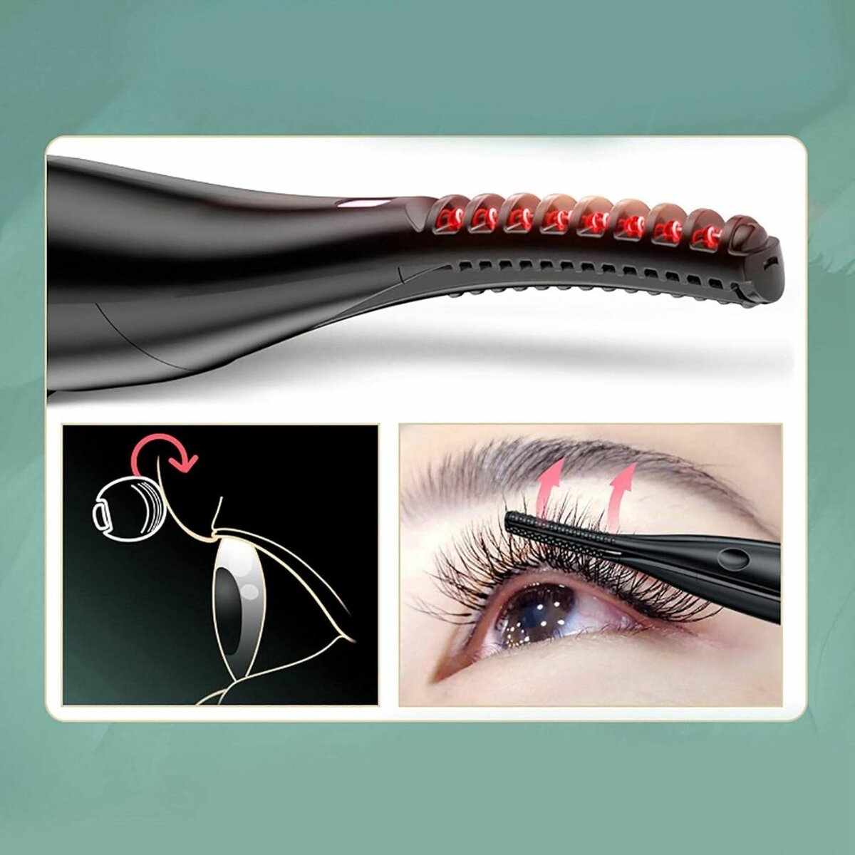 Curling de type clip 2 en 1 : peigne chaud externe pour façonner, recourbe-cils pour boucler les cils, dites adieu aux cils ondulés ou grumeleux. Échauffement des années 20, bouclage rapide des années 60 pour des cils doux et durs