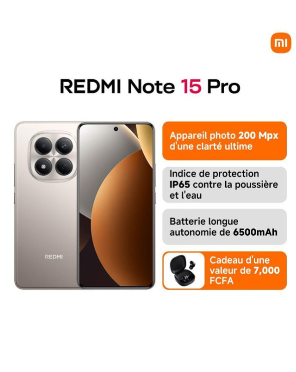 Découvrez le Redmi Note 15 Pro : appareil photo 200 Mpx, indice de protection IP65, batterie longue durée 6500mAh. Un choix idéal pour les utilisateurs exigeants.