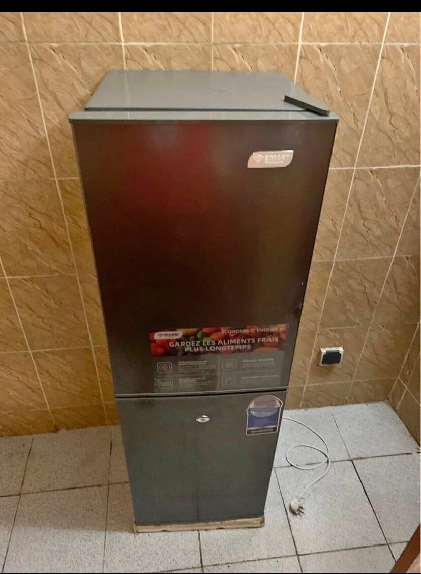 Réfrigérateur 2 portes gris en bon état. Intérieur propre, fonctionne parfaitement. Idéal pour la cuisine ou comme réfrigérateur supplémentaire.