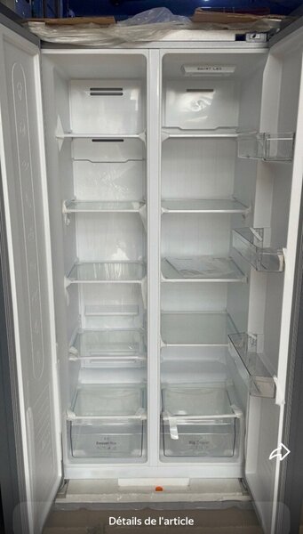Réfrigérateur 2 portes MR UK argent, design moderne et fonctionnalités avancées. Idéal pour les cuisines équipées, économies d'énergie et rangement optimal.