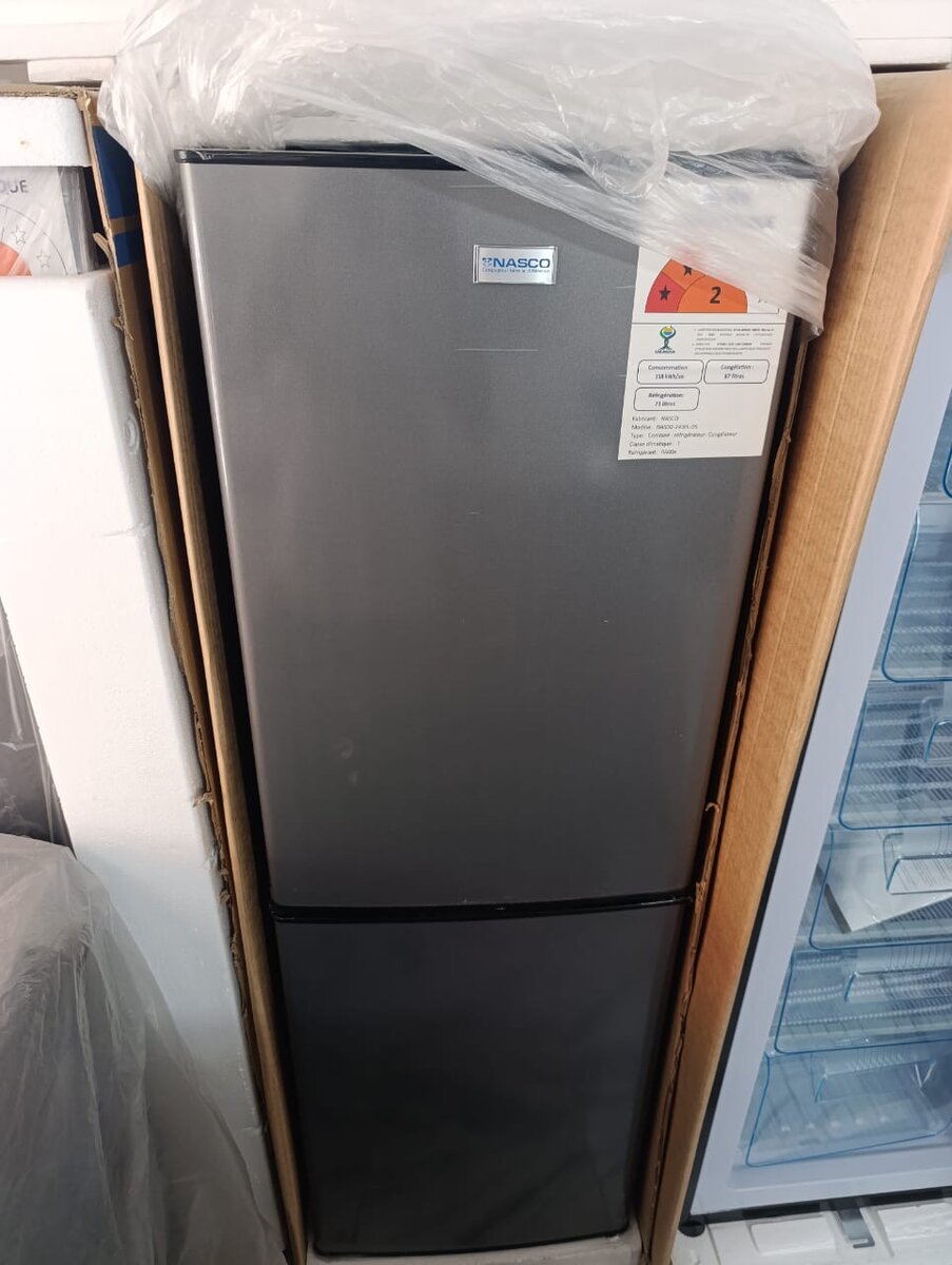 ( Payer à la livraison) Réfrigérateur Nasco 158L Neuf, économique et pratique ! Double porte, plusieurs tiroirs pour une meilleure organisation. Économie d'énergie, design moderne, idéal pour petits espaces. Garantie 12 mois
