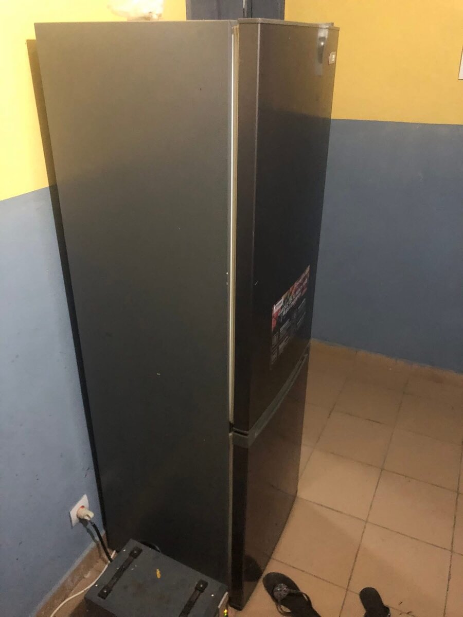 Réfrigérateur compact et fonctionnel, idéal pour les petits espaces. Il est équipé de clayettes ajustables et d'un compartiment congélateur. Parfait pour une cuisine moderne ou un bureau.