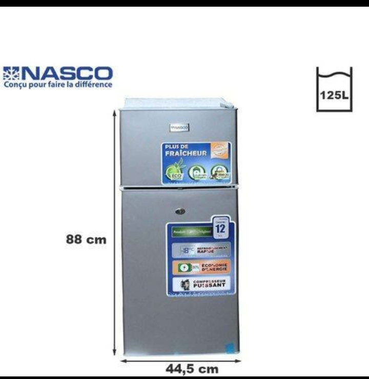 Découvrez le réfrigérateur NASCO 125L, idéal pour les petits espaces. Avec sa conception compacte et sa capacité de 125L, il est parfait pour une utilisation en cuisine, au bureau ou en camping. Économique et écoénergétique, il garde vos aliments frais plus longtemps. Profitez de ses dimensions compactes (88 cm x 44,5 cm) et de son design élégant en acier inoxydable.