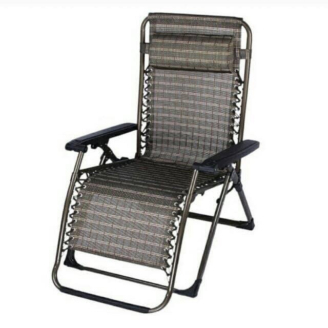 Foldable lazy chair for relaxation. It has backrest for comfort and a reclining feature for adjustable positions.