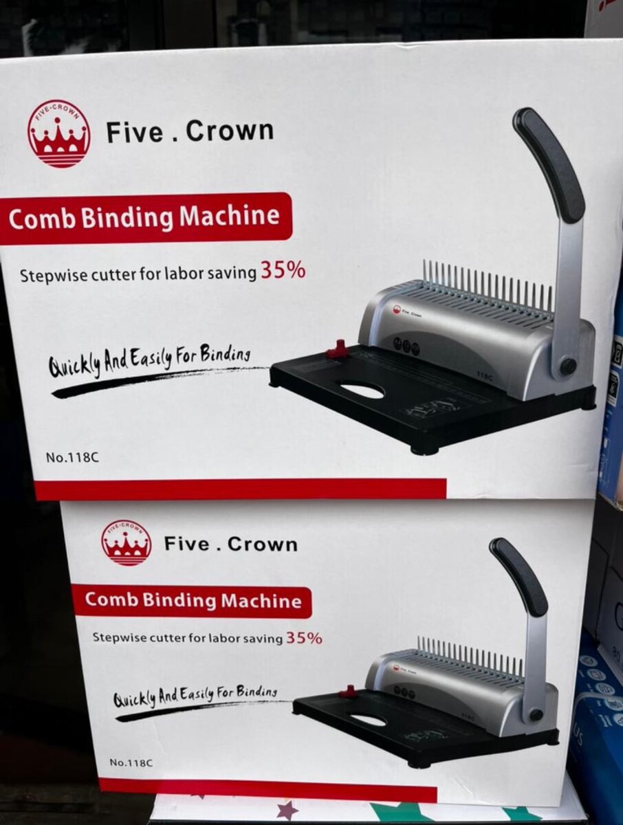 Découvrez notre relieuse à peigne Five Crown, conçue pour une économie d'effort de 35%. Idéale pour les bureaux, elle allie vitesse et simplicité. Parfaite pour reliures professionnelles !