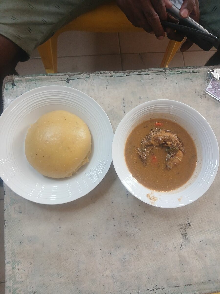 Savourez un plat africain avec foutou banane sauce gouagouassou. Parfait pour un repas réconfortant et authentique.