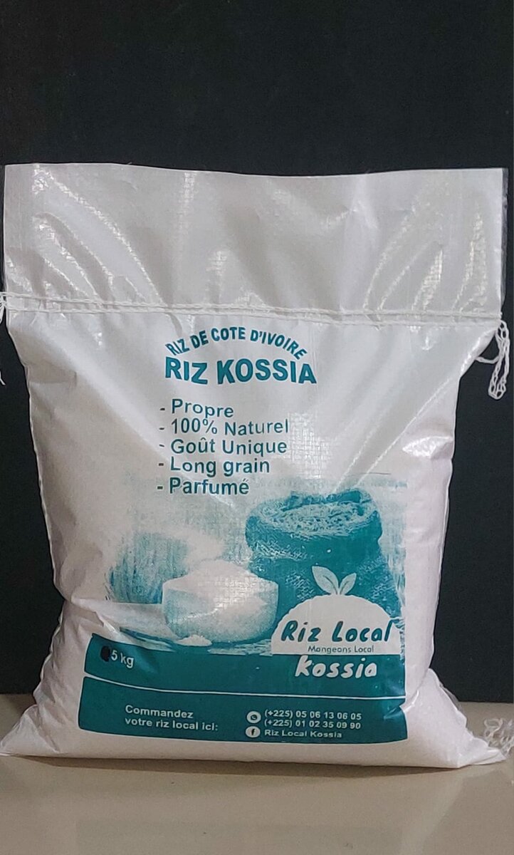 Découvrez le riz Kossia, un riz ivoirien pur et 100% naturel. Savourez son goût unique et son parfum délicat avec des grains longs. Idéal pour vos plats quotidiens ou occasions spéciales. Riz de qualité pour les amateurs de cuisine raffinée!