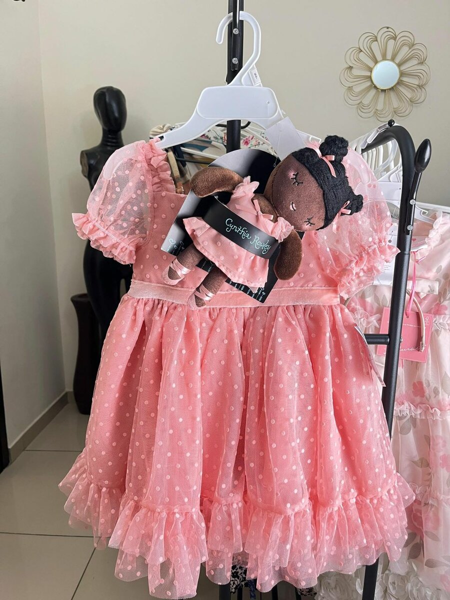 Charmante robe à pois rose pour fille, parfaite pour les occasions spéciales. Confectionnée en tissu léger et confortable, ornée de volants délicats. Inclut une adorable poupée assortie pour un look complet. Idéale pour un anniversaire ou une fête. Offrez à votre petite le style et le confort qu'elle mérite avec cette magnifique tenue.