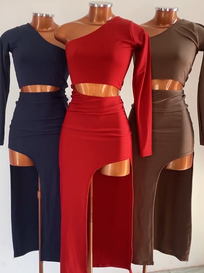 Magnifique robe à manches longues avec découpe asymétrique, parfaite pour une soirée ou un cocktail. Tissu de qualité, disponible en plusieurs couleurs pour un look chic et moderne. Idéale pour mettre en valeur votre silhouette.