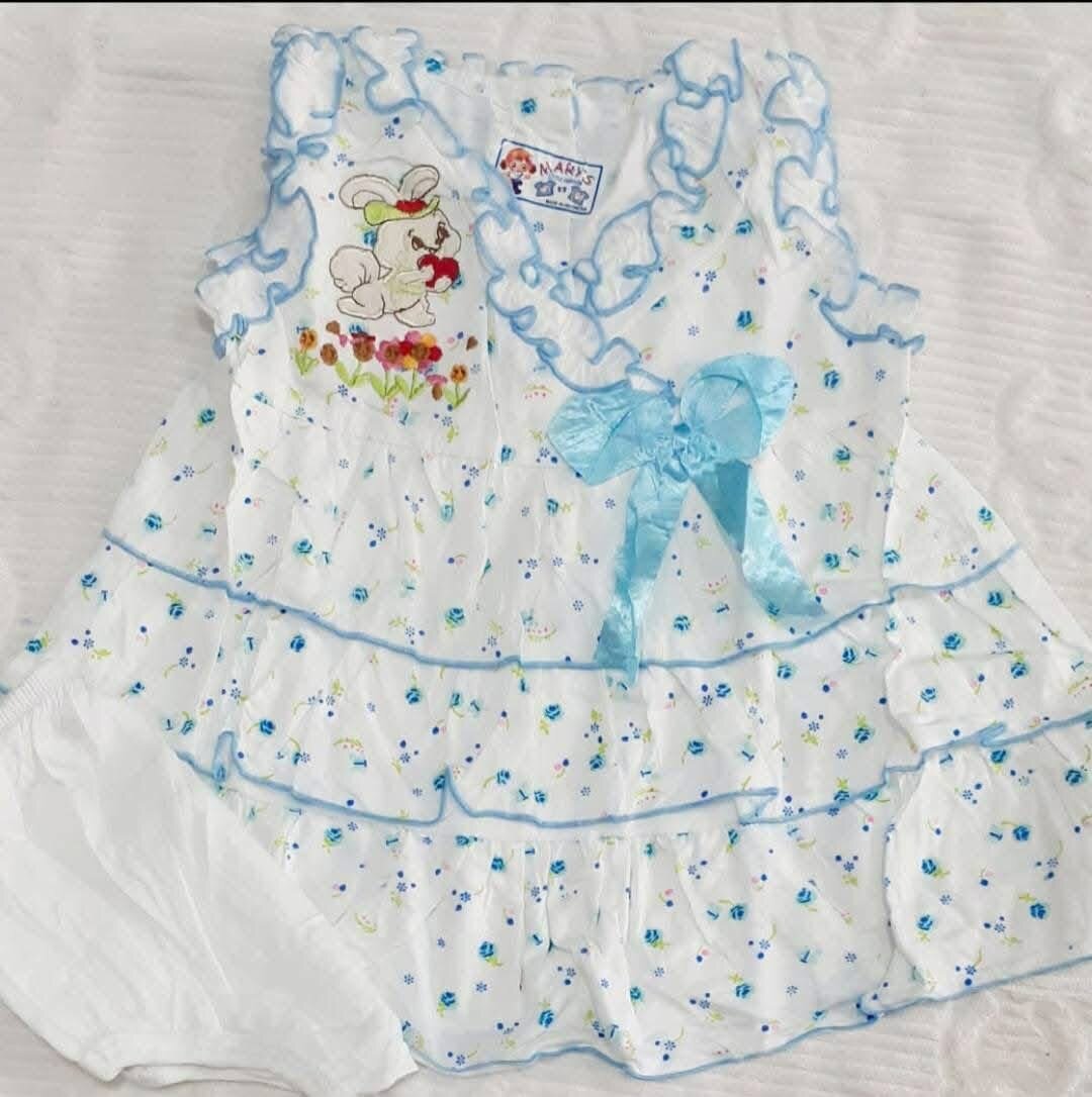 Adorable robe bébé fille avec motif fleurie et noeud bleu. Confort idéal pour la peau délicate des bébés. Parfait pour des occasions spéciales ou pour un usage quotidien. Légère, avec une jolie broderie de personnage. Idéale pour votre petite princesse.