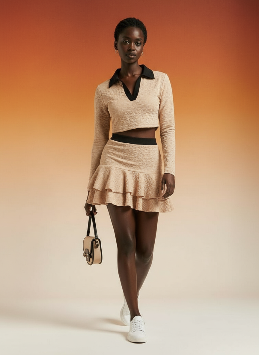 Découvrez cette robe beige élégante et confortable, parfaite pour toute occasion. Fabriquée avec des matières de haute qualité, elle offre un tombé impeccable et une allure chic. Le design avec col contrastant et la coupe cintrée mettent en valeur votre silhouette. Idéale pour une soirée ou un dîner, cette robe vous assure un style raffiné et moderne.