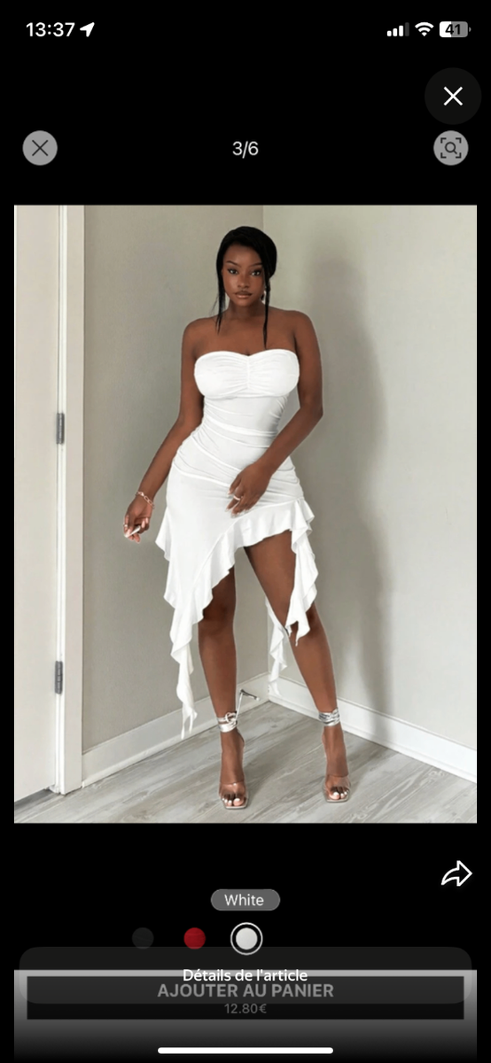 Découvrez cette robe blanche asymétrique, idéale pour les soirées et événements spéciaux. Sa coupe élégante et son design unique vous offriront allure et sophistication. Parfaite pour mettre en valeur votre silhouette, cette robe est un choix incontournable pour toute garde-robe moderne.