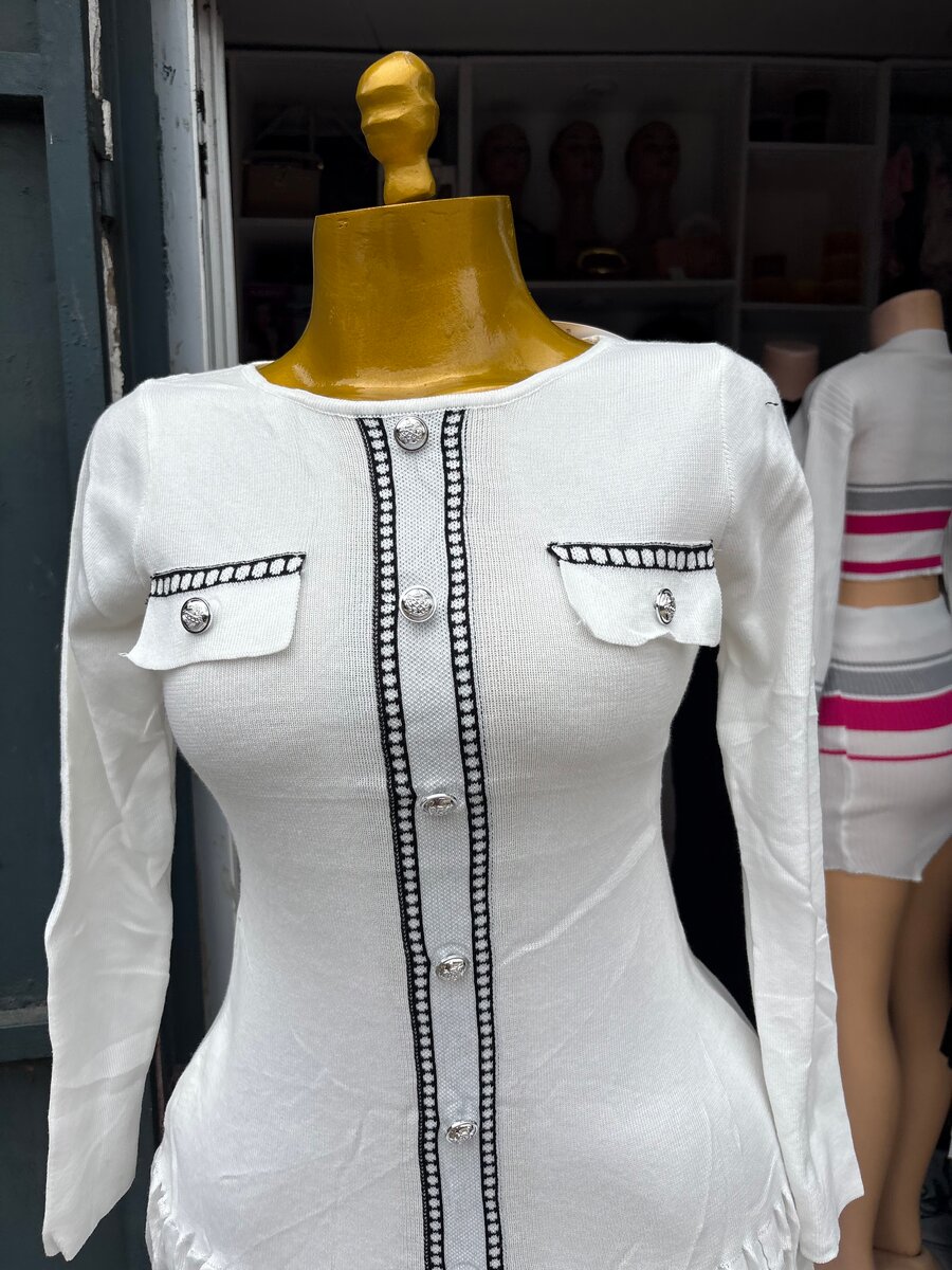 Découvrez notre robe blanche élégante à manches longues avec boutons décoratifs. Conçue pour sublimer votre silhouette, elle est idéale pour des occasions spéciales. Ses poches avant ajoutent une touche de style pratique. Fabriquée avec des matériaux de qualité, elle garantit confort et élégance toute la journée. Parfaite pour des événements ou soirées, elle vous démarquera avec chic.