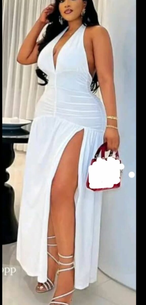 Cette robe blanche élégante et fendue est parfaite pour les occasions spéciales. Sa coupe flatteuse et son design moderne ajoutent une touche de glamour à votre style. Idéale pour les soirées et événements.