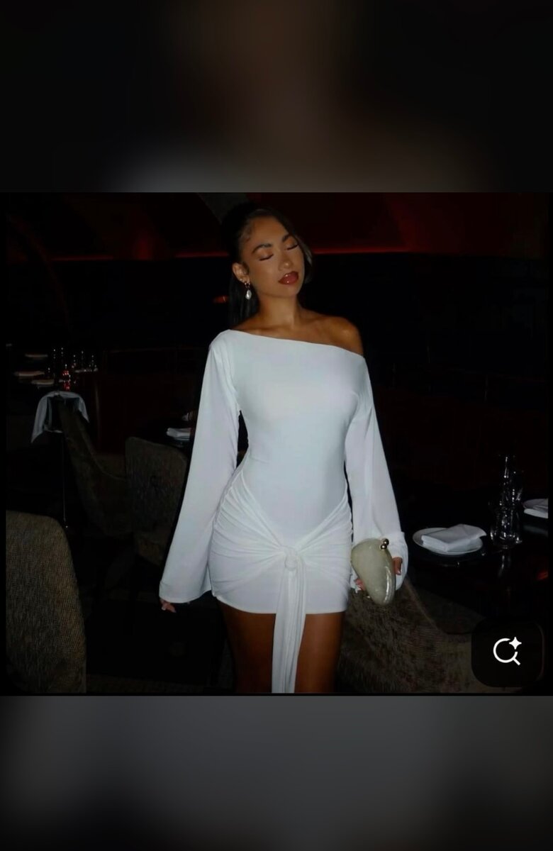 Découvrez cette robe blanche élégante, parfaite pour vos soirées et événements spéciaux. Sa coupe asymétrique et son nœud à la taille apportent une touche de sophistication et de modernité. Fabriquée à partir de matériaux de haute qualité, elle garantit un confort optimal. Idéale pour faire une impression durable lors de vos sorties en ville.