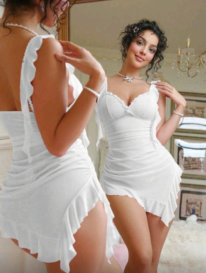 Robe blanche élégante, idéale pour des soirées spéciales ou des événements. Son design ajusté et ses volants ajoutent une touche de romantisme et de glamour. Fabriquée avec des matériaux doux pour un confort optimal. Parfaite pour mettre en valeur la silhouette et attirer les regards lors de vos sorties.