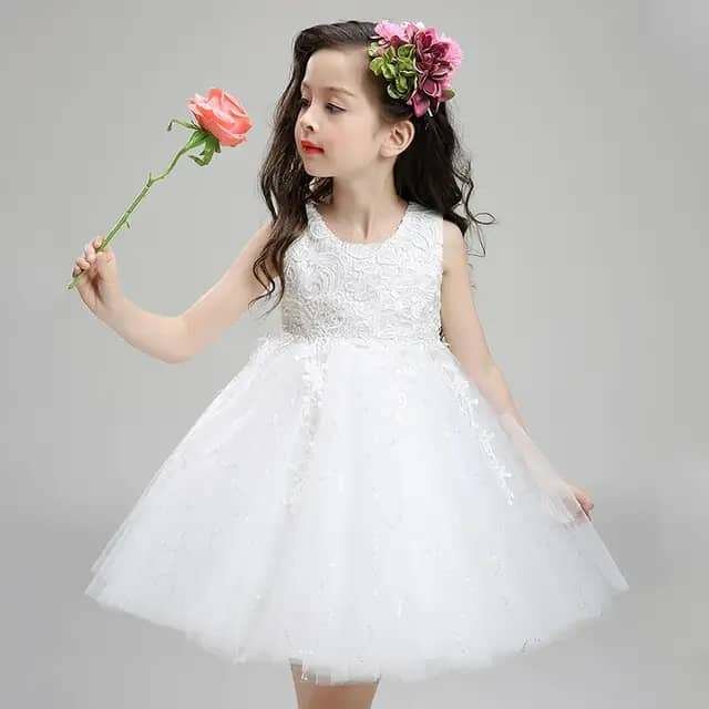Élégante robe blanche pour fille avec détails en dentelle. Parfaite pour mariages et occasions spéciales. Offrez à votre enfant un style raffiné et confortable avec cette tenue chic qui se démarque.