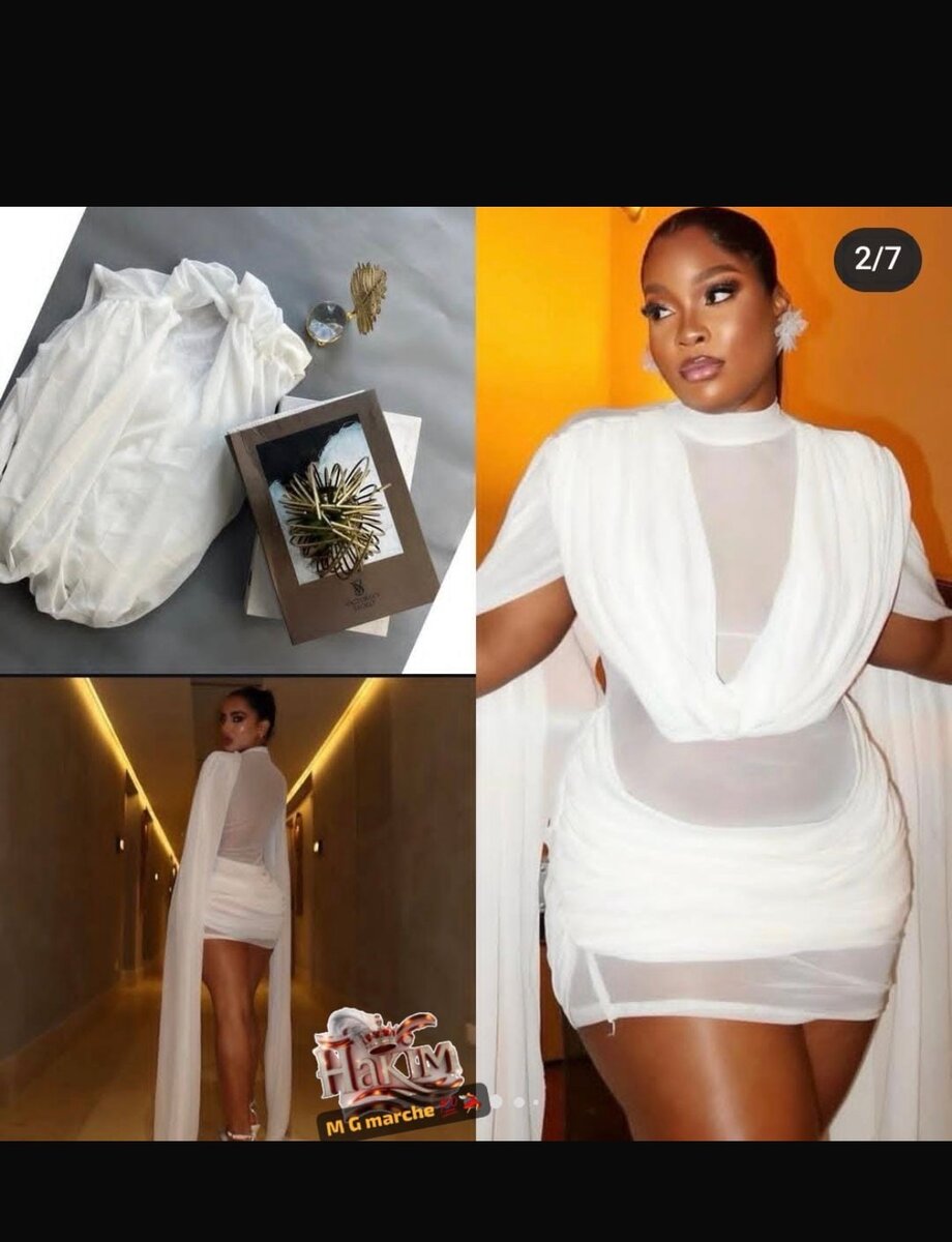 Découvrez cette robe blanche transparente et élégante, parfaite pour des occasions spéciales. En tissu fluide et confortable. Taille ajustable pour un look impeccable.