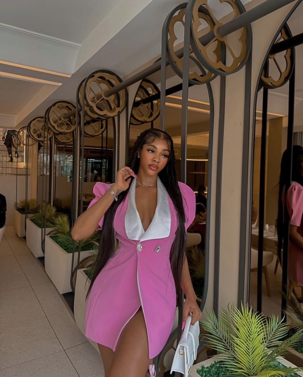 Élégante robe blazer rose avec un nœud distinctif à l'arrière. Parfaite pour des soirées chics et formelles. Conception moderne et féminine qui sublime votre silhouette. Complétez votre garde-robe avec ce vêtement unique et sophistiqué.