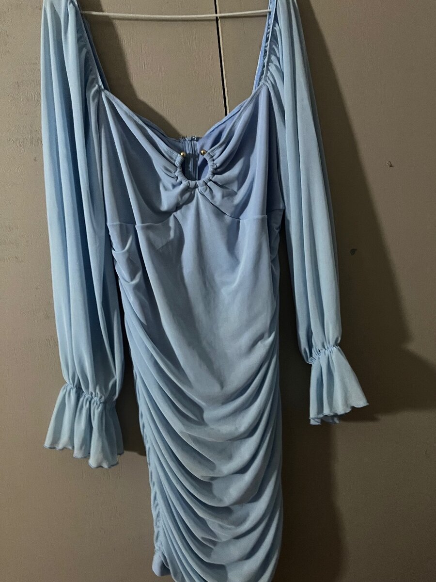 Découvrez l'élégance intemporelle de cette robe bleu drapée, parfaite pour les occasions spéciales. Avec ses manches longues bouffantes et sa taille froncée, elle offre une silhouette flatteuse et confortable. Idéale pour les sorties habillées, elle complète votre garde-robe avec style et sophistication. Disponible en grande taille pour un ajustement parfait.