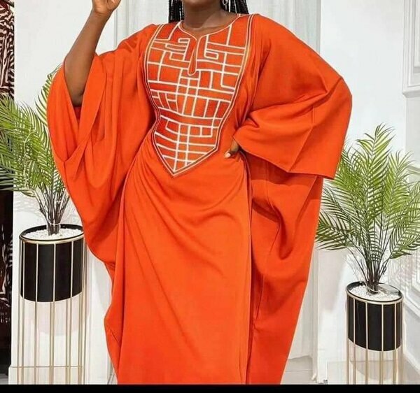 Robe boubou rose clair broderies, très élégante, confortable et tendance. Parfaite pour invités de mariage ou cérémonies familiales. Large choix de tailles.
