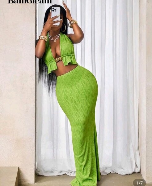 Robe à bustier bleu et jupe fluide blanche, silhouette féminine, parfaite pour les évènements spéciaux ou sorties habillées.