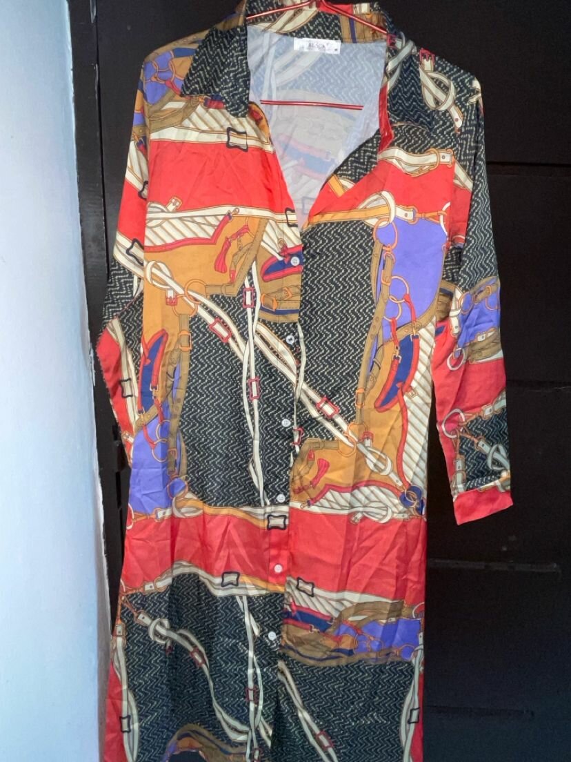 Adoptez l'élégance avec cette robe chemise aux motifs originaux. Idéale pour un look chic et décontracté, elle s'adapte facilement à toutes les occasions. Fabriquée dans un tissu confortable, elle assure une coupe fluide et agréable à porter. Parfaite pour une sortie décontractée ou une journée au bureau.