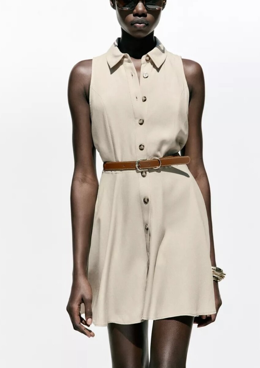 Découvrez cette robe chemise Zara sans manches, idéale pour un look chic et décontracté. Confectionnée dans un tissu léger, elle est dotée de boutons sur toute la longueur et d'une ceinture pour cintrer la taille. Parfaite pour les journées ensoleillées ou les tenues de bureau estivales, associée à des accessoires simples pour un style épuré. Un choix polyvalent qui habille vos journées avec élégance.