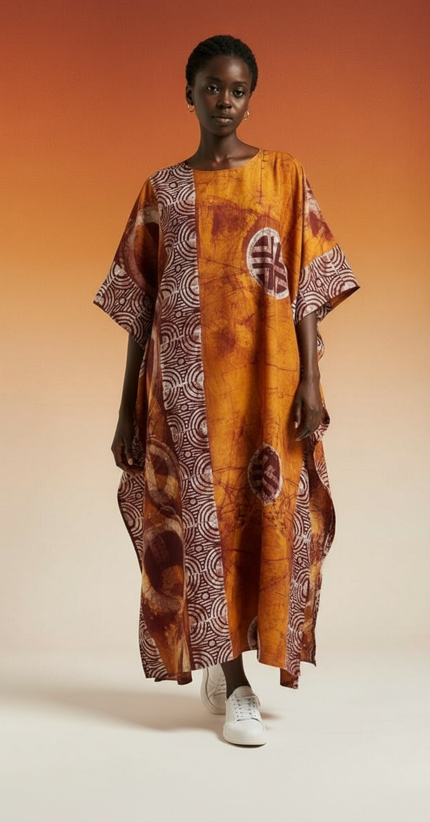 Découvrez cette magnifique robe en coton aux motifs vibrants, idéale pour toutes les occasions décontractées et festives. Sa conception unique et son tissu léger offrent confort et élégance. Parfaite pour faire une déclaration de style.