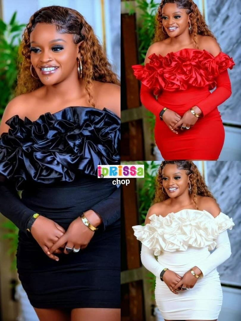 Découvrez cette robe courte élégante à volants, parfaite pour une soirée ou une occasion spéciale. Disponible en noir, rouge et blanc.