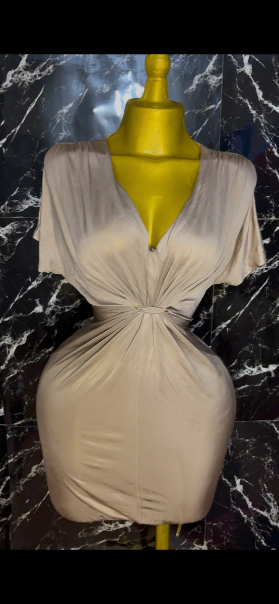Découvrez cette robe courte en jersey beige élégante et confortable. Parfaite pour les occasions décontractées ou pour une soirée habillée. Coupe ajustée avec une jolie forme près du corps.