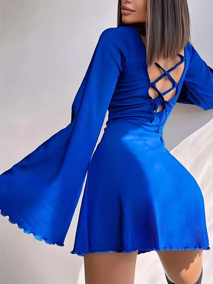 Découvrez cette robe courte élégante à manches longues, dotée d'un design croisé dans le dos. Parfaite pour des occasions spéciales, cette robe en tissu satiné offre une allure sophistiquée et moderne. Idéale pour les femmes qui cherchent une tenue raffinée et confortable.