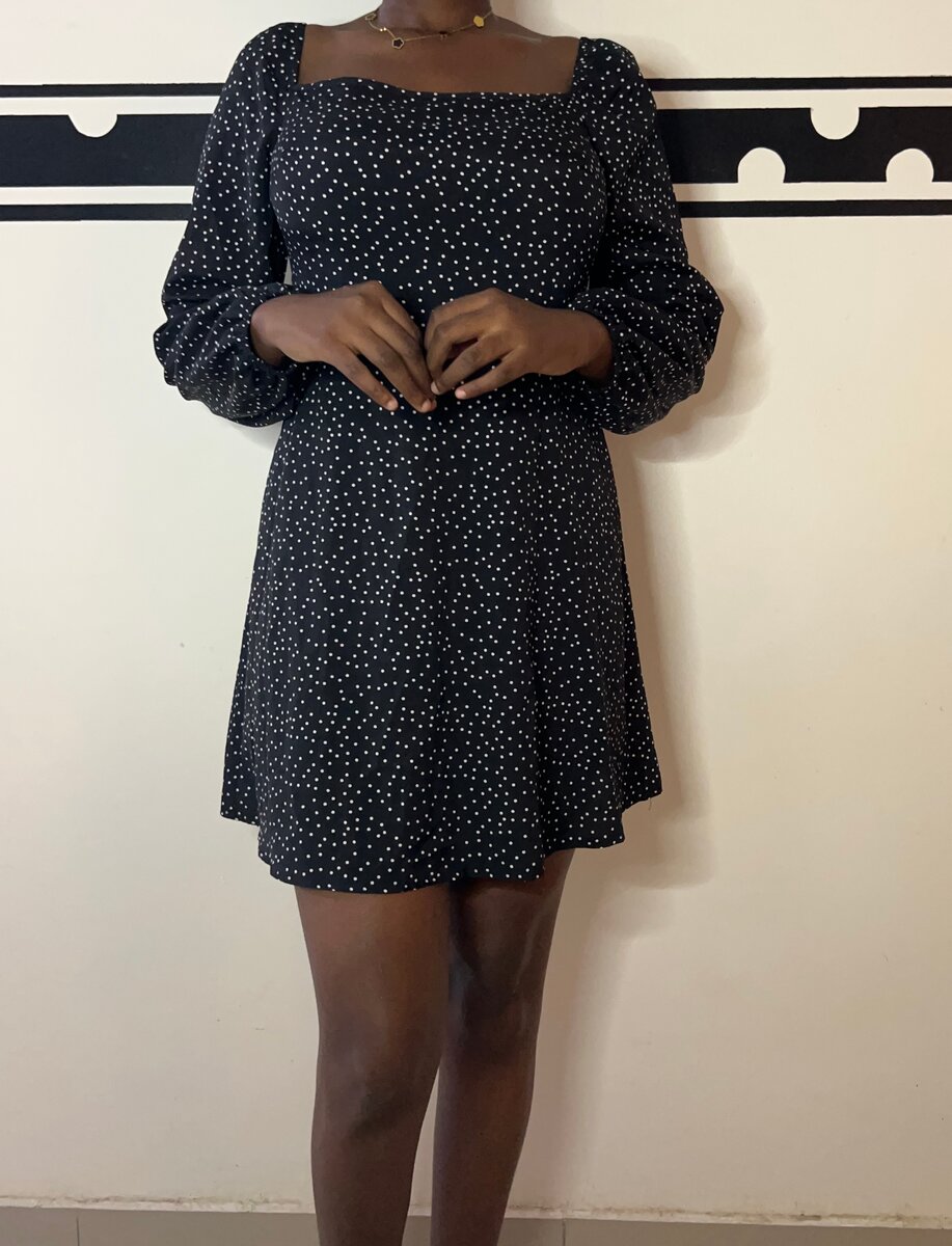 Cette robe courte noire à pois est parfaite pour un look chic et décontracté. Avec ses manches bouffantes et son encolure carrée, elle allie confort et style. Idéale pour une sortie ou un rendez-vous, elle mettra en valeur votre silhouette tout en offrant un maximum de confort. N'hésitez plus, ajoutez une touche de glamour à votre garde-robe !