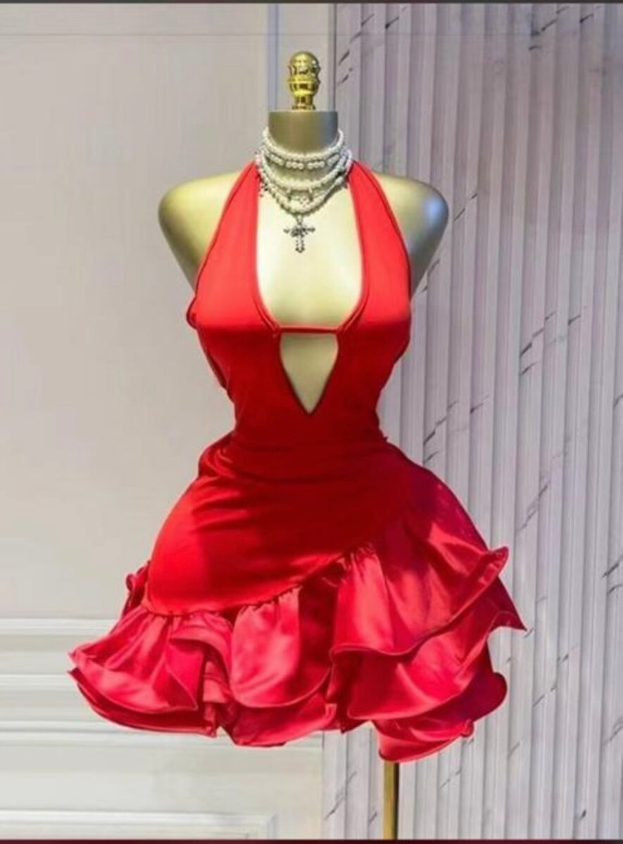 Découvrez cette robe courte élégante, disponible en rouge ou noir. Parfaite pour des occasions spéciales, elle combine un design sexy et raffiné avec une jupe à volants. Confectionnée pour mettre en valeur votre silhouette.