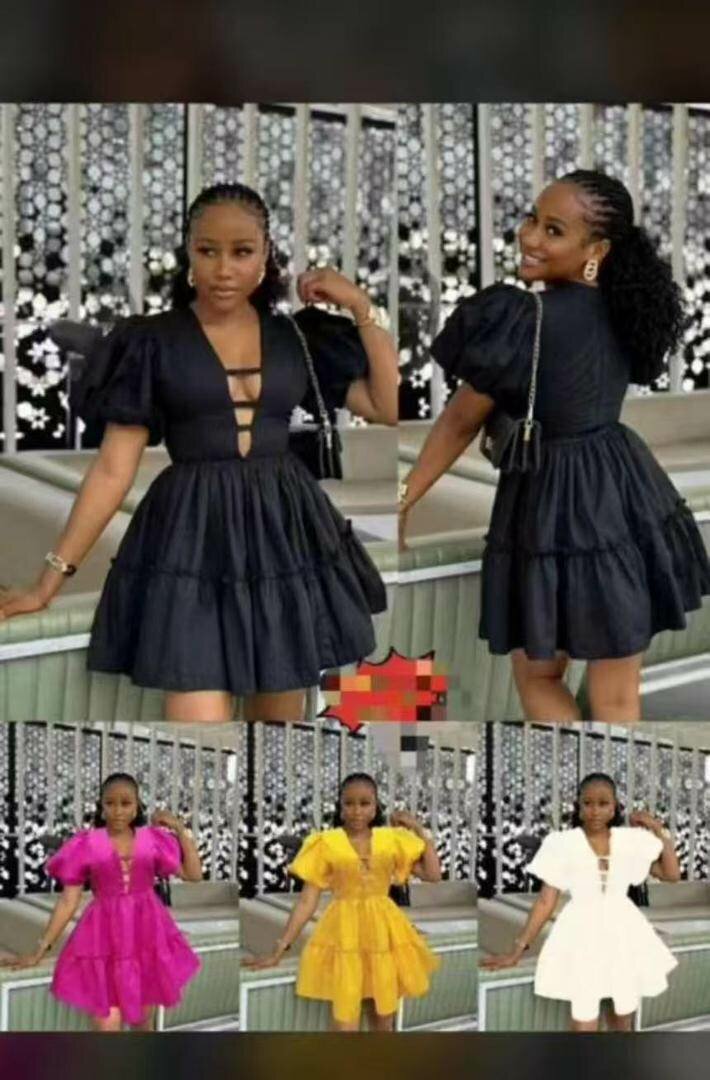 Optez pour cette robe courte évasée, parfaite pour des soirées ou des occasions spéciales. Disponible en plusieurs couleurs, elle se distingue par son design chic avec un décolleté plongeant et des manches bouffantes.