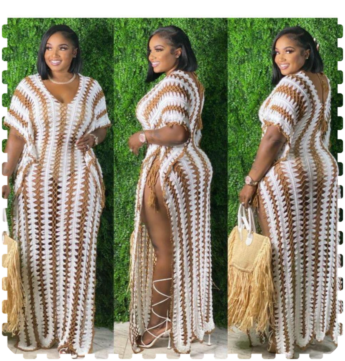 Robe en crochet marron pour femme