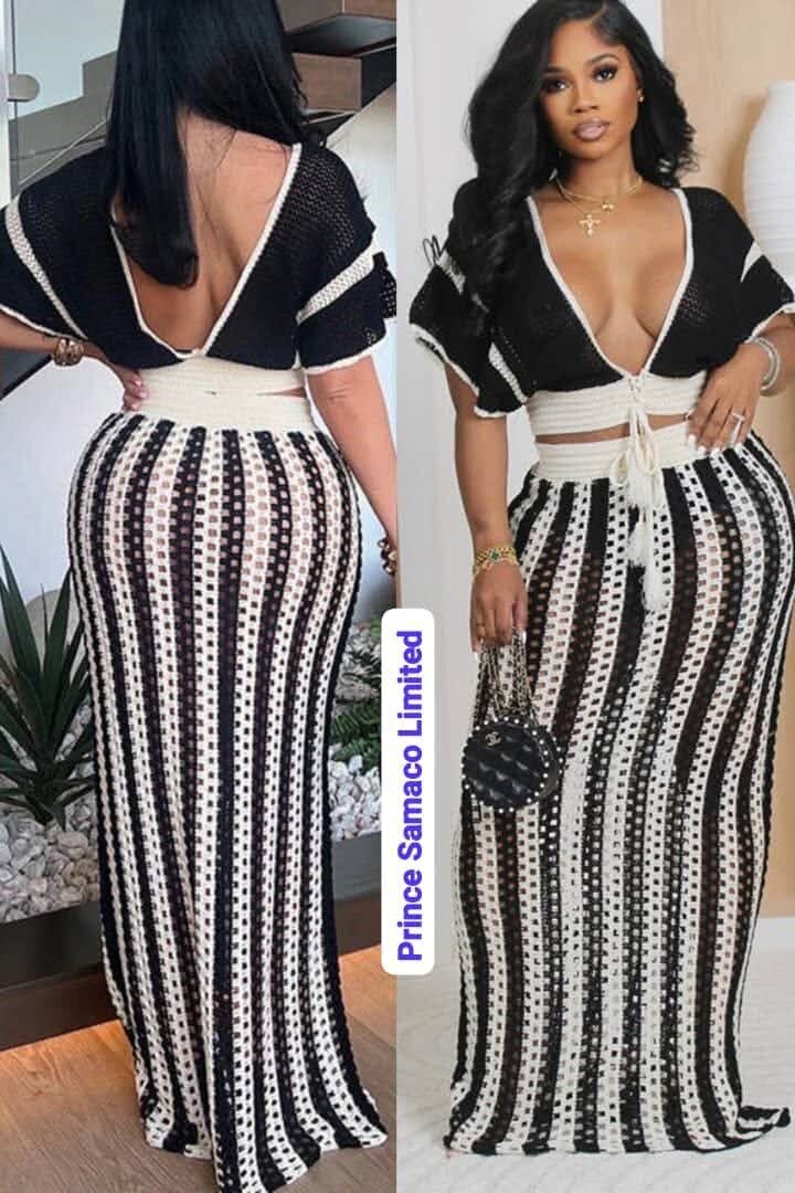Sublime robe crochetée avec design rayé, parfait pour un style estival chic. Matériaux légers et respirants pour une élégante allure décontractée sur la plage ou en soirée. Optez pour un look unique et séduisant !