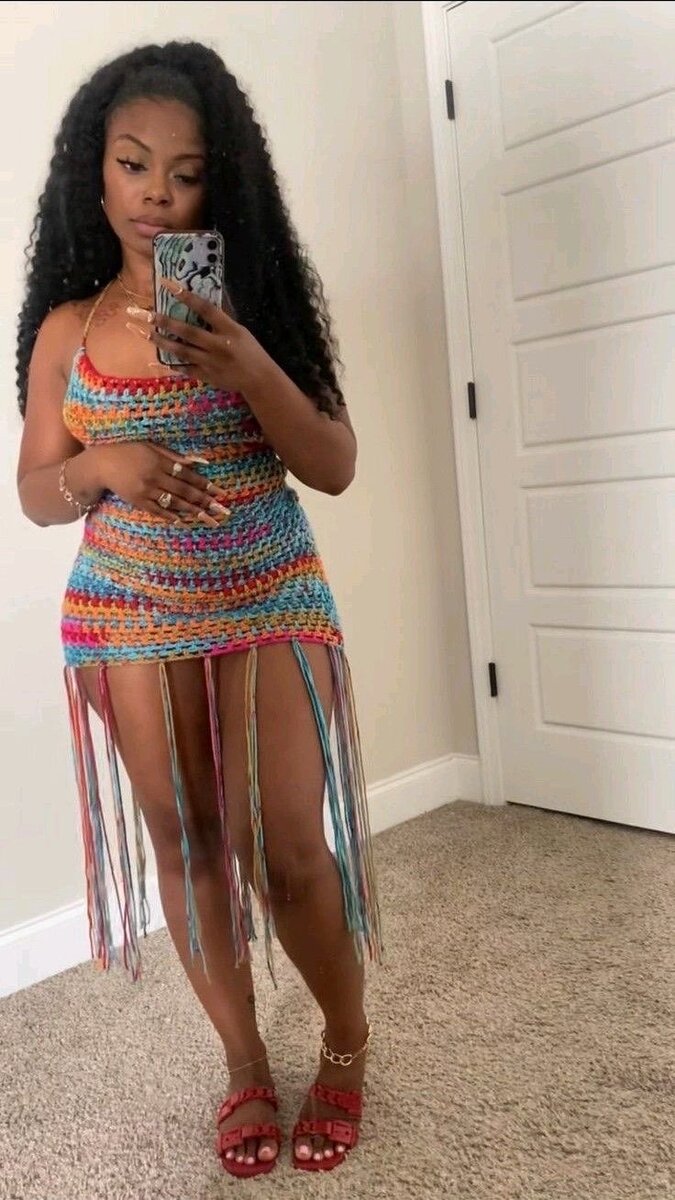 Cette robe crochetée multicolore est l'essence même de l'été! Idéale pour les journées chaudes, elle apporte style et confort. Les franges ajoutent une touche bohème chic, parfaite pour une sortie à la plage ou une fête en plein air. Fabriquée avec des matériaux doux, elle est légère et agréable à porter. Faites sensation cet été avec cette pièce unique!