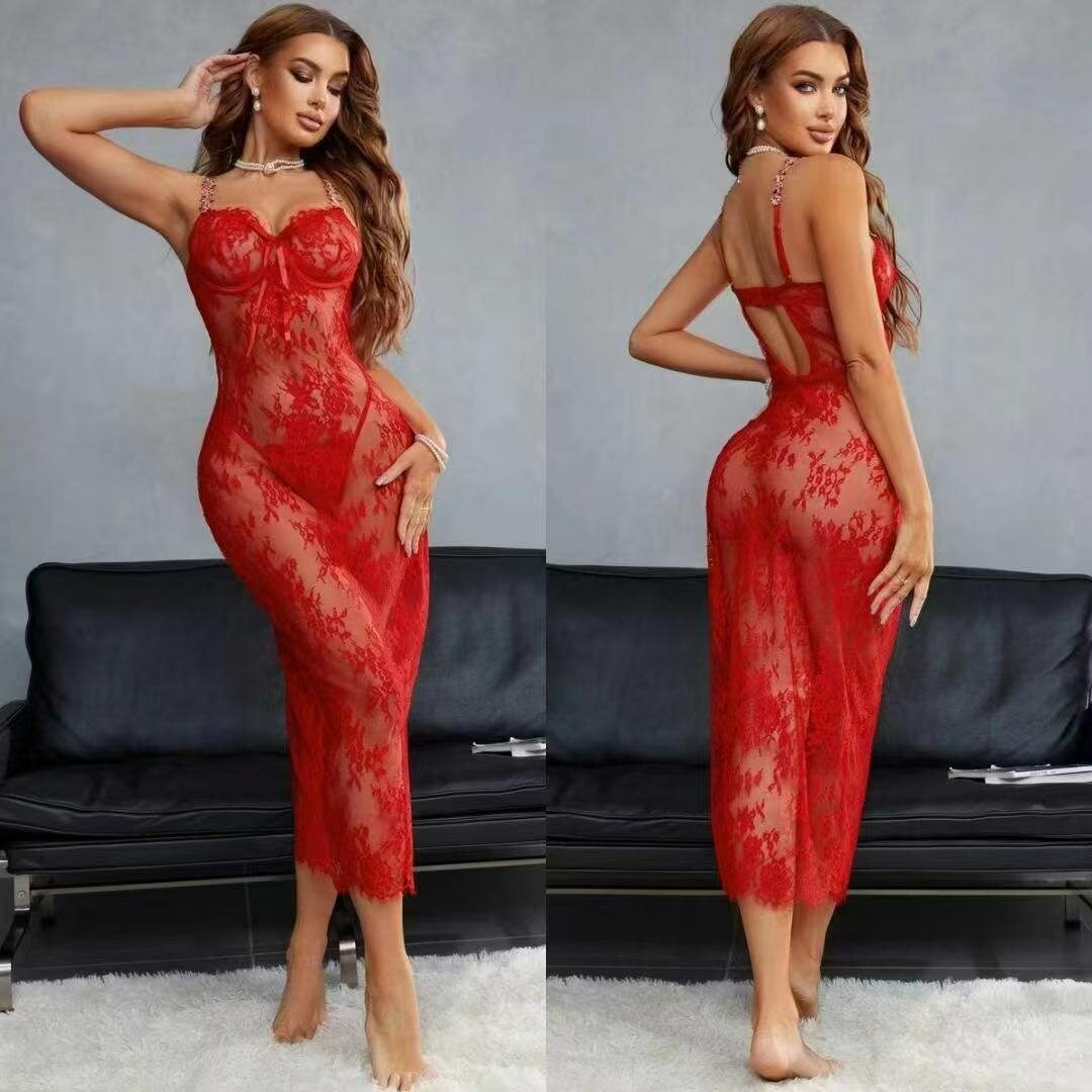 Découvrez cette robe de nuit rouge en dentelle transparente et élégante. Parfaite pour les nuits romantiques, elle offre un look séduisant et sophistiqué. Confectionnée avec des matériaux de qualité pour un confort optimal.
