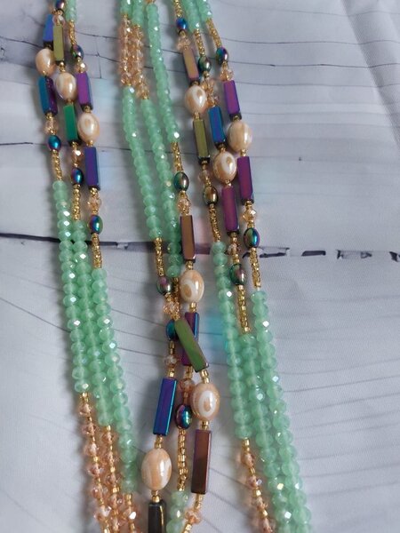 Collier long perles et cristaux