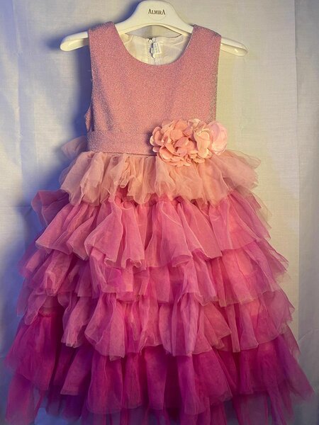 Magnifique robe de princesse pour fillette, parfaite pour les occasions spéciales. Conçue en tissu léger avec jupe en tulle, idéale pour les petites filles qui rêvent de grandeur.