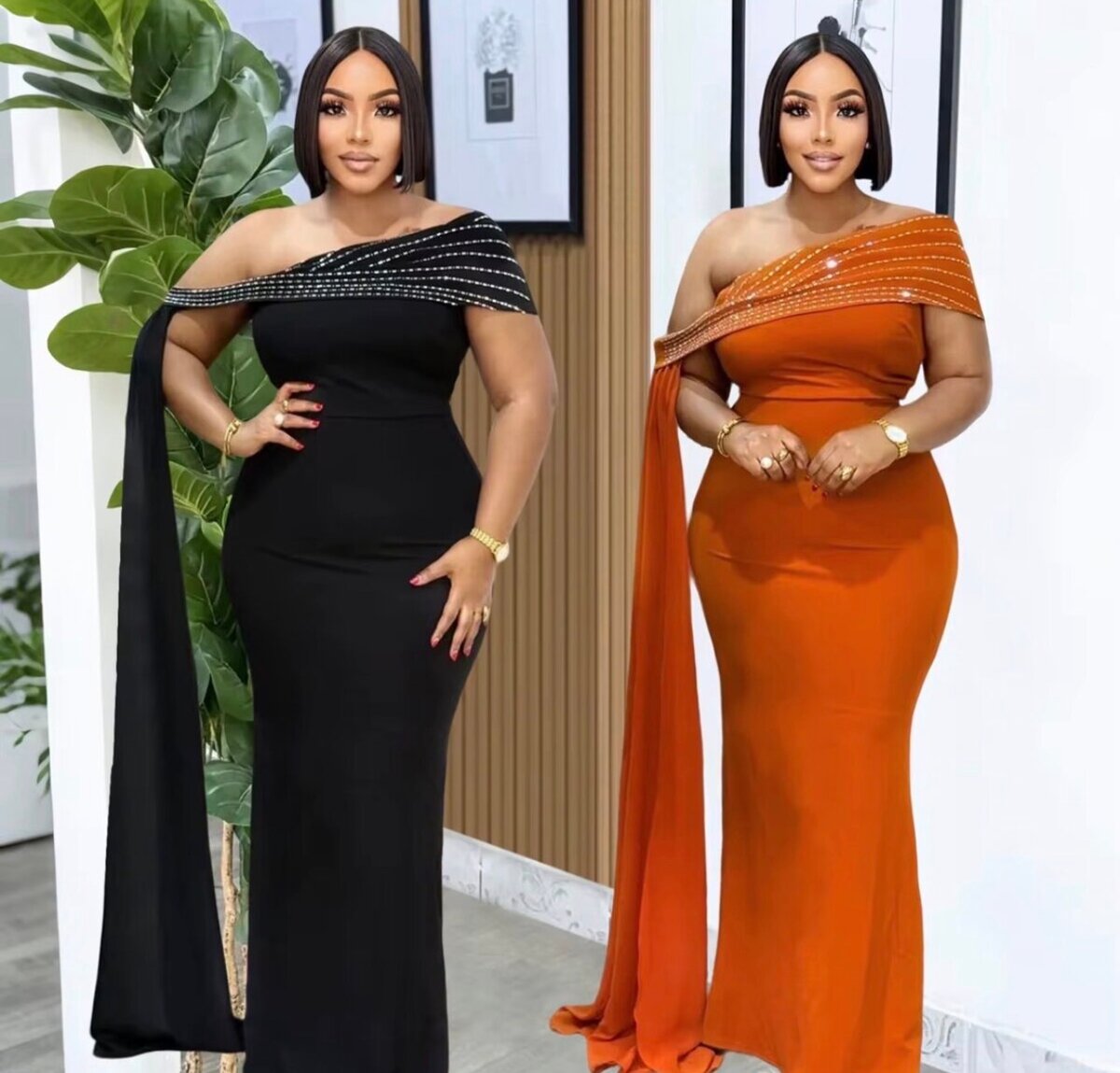 Élégante robe de soirée asymétrique ornée de perles, parfaite pour des occasions spéciales. Conçue pour mettre en valeur votre silhouette.