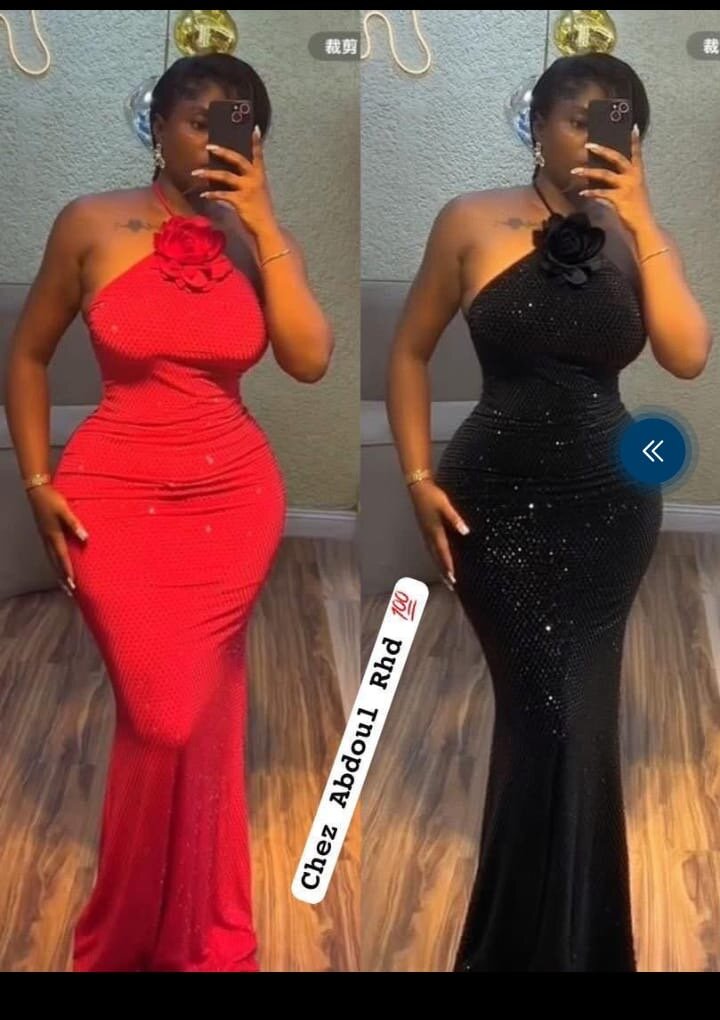 Découvrez cette robe longue asymétrique, idéale pour les occasions spéciales. Conçue avec des détails de fleurs et des finitions brillantes. Disponible en rouge et noir.