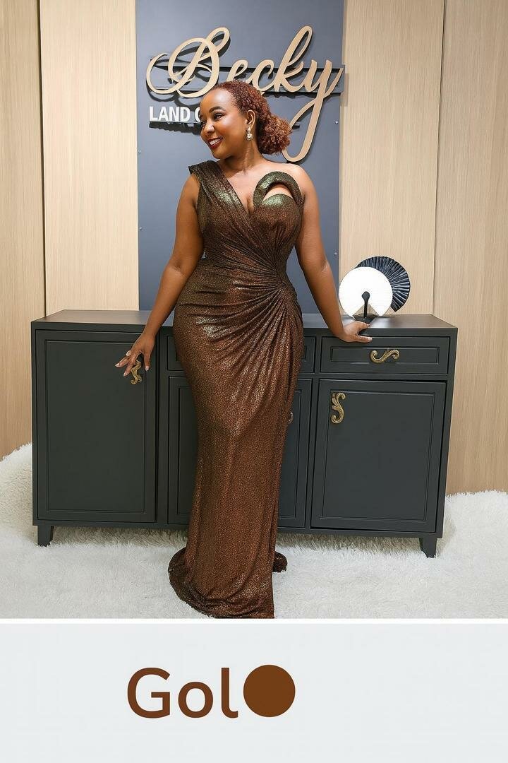 Cette robe de soirée brillante est parfaite pour mettre en valeur votre élégance lors des occasions spéciales. Avec ses plis sophistiqués et sa coupe flatteuse, elle est idéale pour les soirées glamours. Portez-la avec des accessoires minimalistes pour un look raffiné.