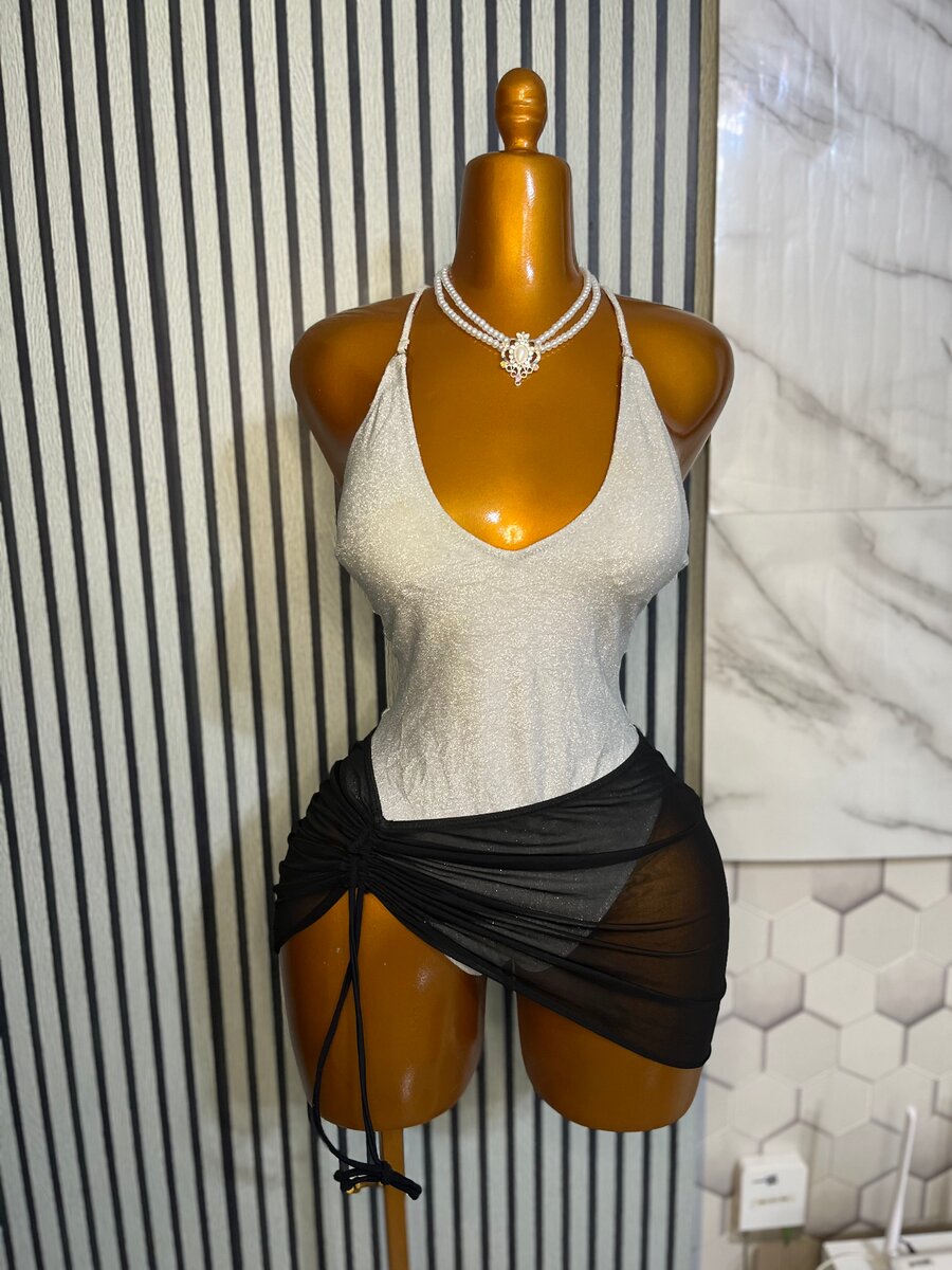 Découvrez cette robe chic et élégante, idéale pour des soirées inoubliables. Sa confection en tissu scintillant et sa jupe noire asymétrique apportent une touche de sophistication. Parfaite pour attirer tous les regards lors de vos événements spéciaux.
