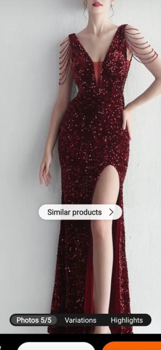 Élégante robe longue rouge à paillettes, idéale pour les occasions spéciales. Son décolleté en V et sa fente sur le côté ajoutent une touche de sophistication. Parfaite pour les femmes qui aiment se sentir glamour.