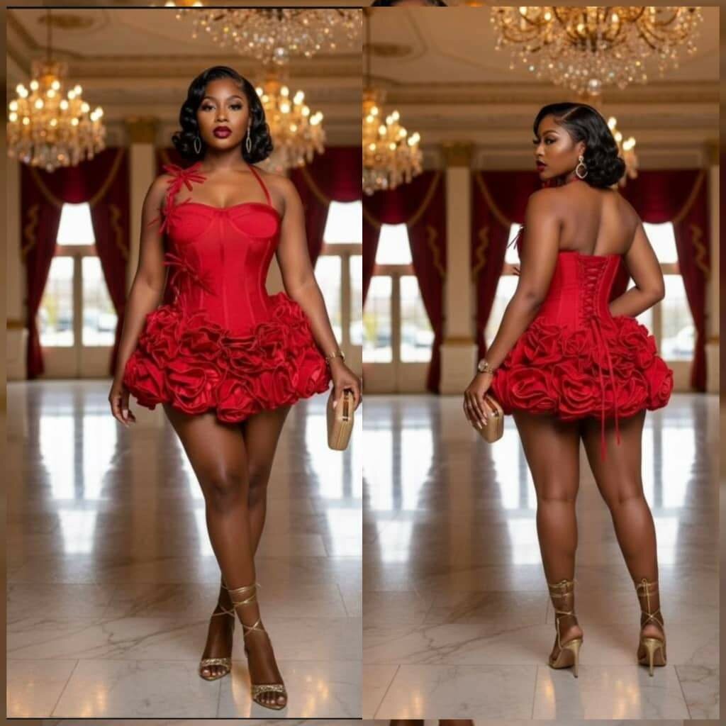 Éblouissante robe de soirée rouge, parfaite pour des événements élégants. Design audacieux avec une coupe flatteuse et détails floraux accrocheurs. Idéale pour briller lors de soirées spéciales ou galas.