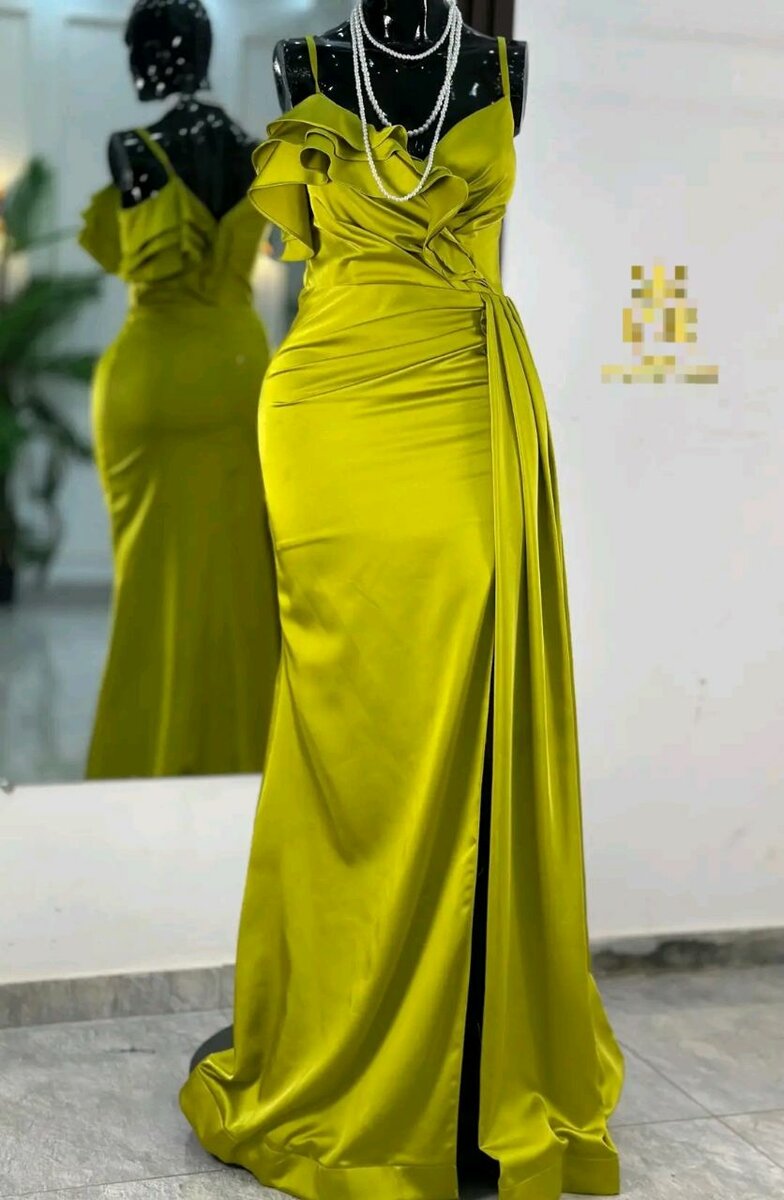 Découvrez cette robe de soirée verte, en satin, parfaite pour les occasions spéciales. Son design élégant et fluide vous assure une allure raffinée.