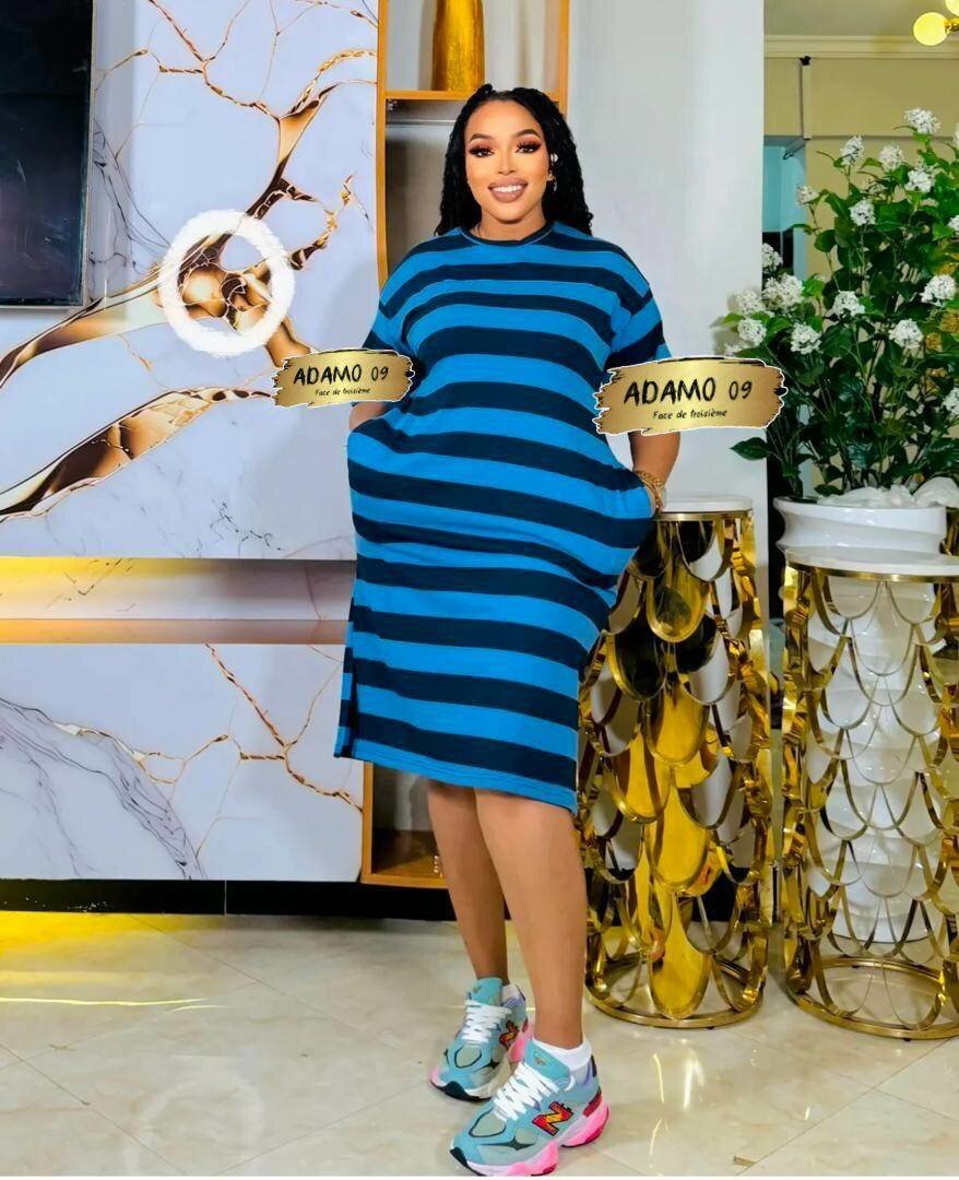 Découvrez notre robe décontractée à rayures, idéale pour un look estival chic et décontracté. Confectionnée en matière légère et respirante, cette robe est parfaite pour les journées chaudes. Ses poches pratiques ajoutent une touche fonctionnelle, tandis que sa coupe flatteuse convient à diverses morphologies. Choisissez-la pour vos sorties en ville ou une promenade à la plage.