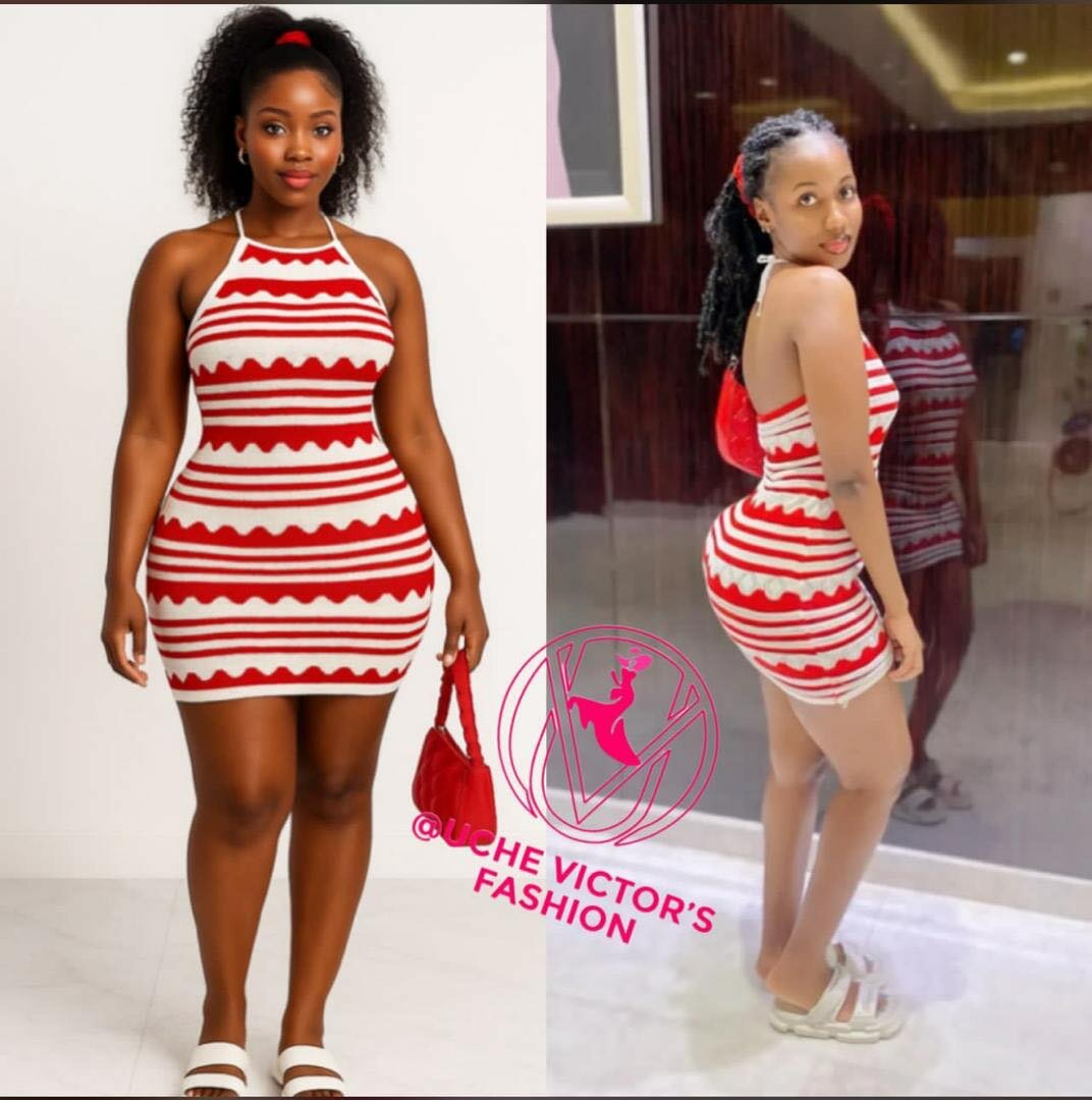 Cette robe d'été rayée rouge et blanche est un choix parfait pour une sortie décontractée ou une soirée estivale. Avec sa coupe ajustée et son motif accrocheur, elle met en valeur toutes les silhouettes. Fabriquée dans un tissu léger et confortable, elle vous assure style et aisance toute la journée.